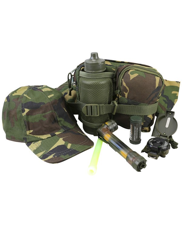 The DPM waist bag with bottle is a large bag mounted on quick-release waist belt. It has a large central compartment with zipped pockets and also includes a water bottle. The waist bag is made from 600D Tac-Poly making it tough and durable and is an ideal bag for playtime for a small soldier.