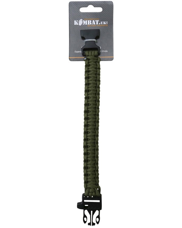 Survival Paracord Wristband and Whistle – Olive Green